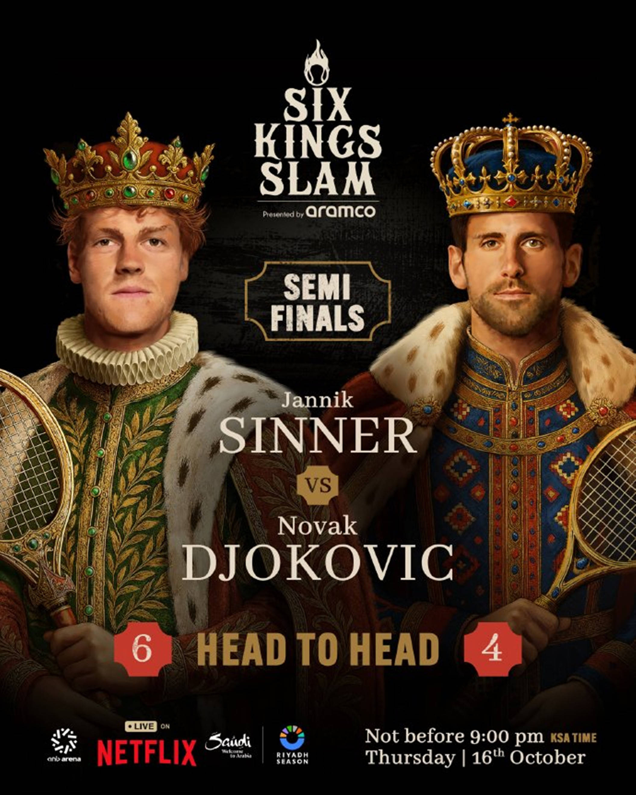 接下来的比赛中,辛纳将与首轮轮空的德约科维奇展开半决赛对决,而阿尔卡拉兹则将迎战弗里茨。沙特六王大满贯的半决赛对阵如下: