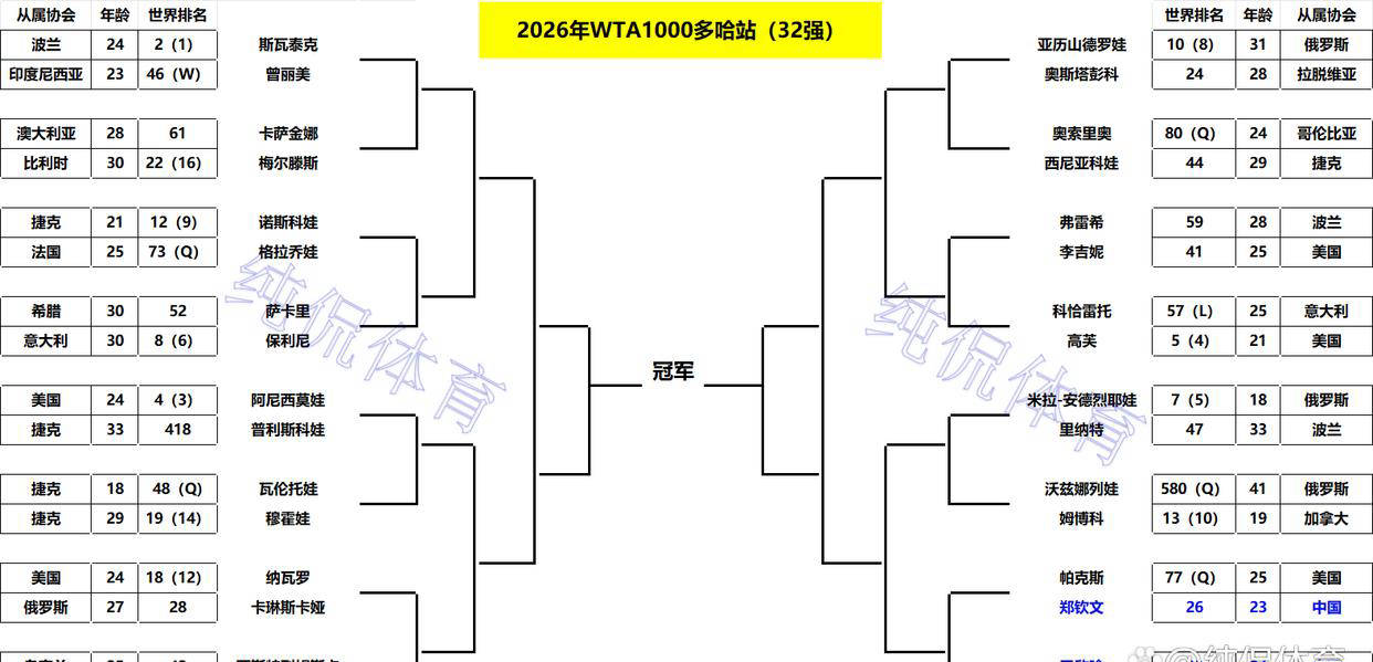 2026年多哈WTA1000赛是新赛季女子网坛的第一场顶级比赛。世界排名前十的选手中,白俄罗斯的萨巴伦卡和美国名将佩古拉缺席,使得赛场竞争更显激烈。值得一提的是,郑钦文时隔133天在本站重返赛场,令众多中国球迷纷纷关注她的表现。