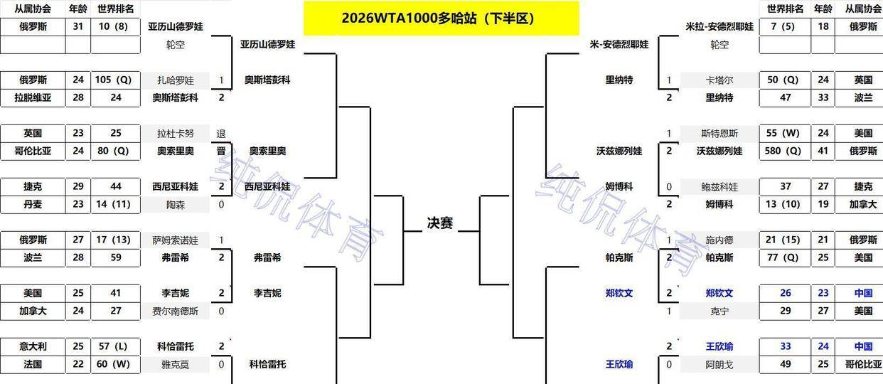 多哈站是WTA1000级别的顶级赛事,签表强度高,竞争异常激烈。 冷门的频繁出现,佐证了女子网坛顶尖层次的比拼充满了不确定性。 任何一位选手的临场状态,都可能直接决定比赛走向。