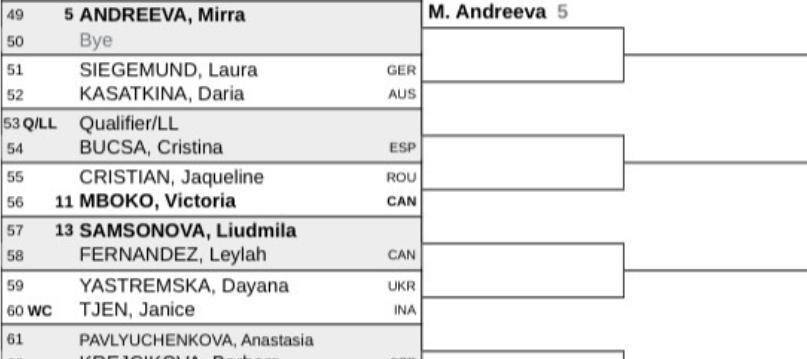 下半区则完全是另一番景象,混乱且充满变数。 2号种子阿尼西莫娃携多哈夺冠的余威而来,但她首轮就曾爆冷输球,状态稳定性存疑。 5号种子、卫冕冠军安德烈耶娃更是在热身赛中状态低迷,卫冕前景蒙上阴影。 这个半区还聚集了刚刚在多哈淘汰了安德烈耶娃并打入决赛的加拿大超新星姆博科,她能否延续黑马势头,也是一大看点。